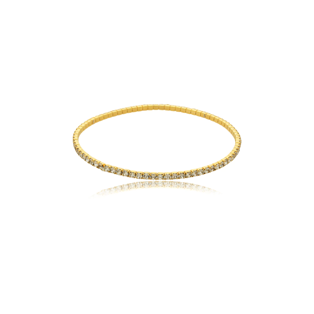 Pulseira Cristais, romântica, cheia de personalidade. Ccristais transparentes trazem um charme único, enquanto o banho de Ouro garante um acabamento delicado e elegante. Ideal para compor mix com outras pulseiras ou ser o destaque do look.